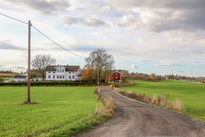 Parti fra den nordøstre delen av Sinnerudveien. Gården er Østre Ustvedt.