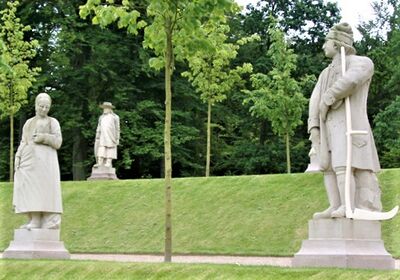 Ved Fredensborg slott ligger Nordmandsdalen, som er en del av slottets parkanlegg. Det ble anlagt 1764–1773, og er utsmykka med statuer av norske bønder og fiskere, laget av hoffbilledhogger Johann Gottfried Grund etter mønster av beinfigurer skåret ut av hallingdølen Jørgen Christensen Garnaas.