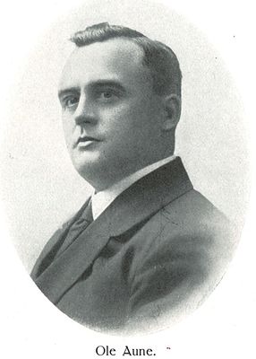 Ole L. Aune var aktiv venstremann og lokalpolitiker og medlem av kommunestyret/formannskapet i flere perioder. Han spilte en stor rolle i byens håndverker- og politiske liv fram til sin død i 1915. Han var gift med Ingeborg Iversdatter fra Melhus, men ble tidlig enkemann.