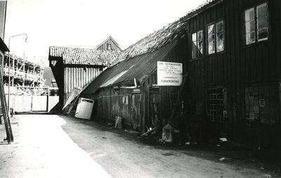 Bygget hadde en etasje pluss loft, var 25 meter langt, og var delt i to omtrent på midten. (Ole) Hermansen & (Øivind) Mikkelsen hadde skraphandel i øvre del. (1940). Vinmonopolets flaskesentral, (1940). Fra dette lokalet gikk det en liten gang over i Sjøgata 39b, hvor Hermansen hadde et lager, og det var ved denne gangen at man antar at den store brannen startet i 1969.