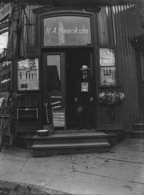 «I. Clausen», etabl. 1863, reklamerte med «Handel med manufaktur og kortevarer» i 1869. Bak forretningen sto Jonas Andreas Clausen (1830-1892). Han kjøpte gården i 1884.