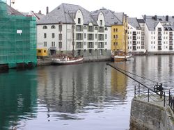 I Ålesund vart bryggjene, der kalla sjøbuene, som vart oppattbygde etter brannen i Ålesund i 1904, bygde i mur. Den gamle trebryggja Holmbua på Aspøya, bygd kring 1860, greidde seg gjennom brannen og står som eit einsleg eksempel på dei mange trebryggjene i Ålesund i andre halvdelen av 1800-talet.