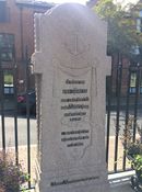 - Minnestein, "Våre falne", på plassen utenfor sjømannskirken, med utdrag av dikt av Nordahl Grieg.Foto: Stig Rune Pedersen