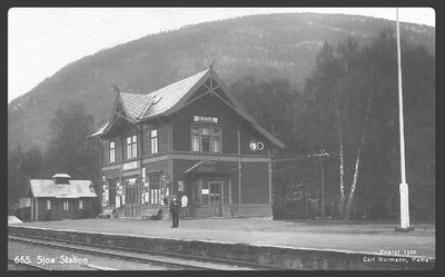Stasjonsbygningen her er en stasjonsbygning av klasse 3 for Hamar-Selbanen. I 1902 ble Sjoa oppgradert til stasjon. Stasjonen ble fjernstyrt i 1967. Persontrafikken ble innstilt i 1988, startet igjen i 1989 og så endelig innstilt i 2001. Togene stopper nå bare for å krysse.
