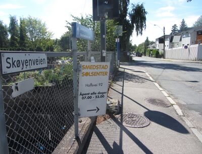 Motiv fra Skøyenveien i Oslo. Bildet er tatt nær Vestre gravlund, der veien krysser over Røabanen.