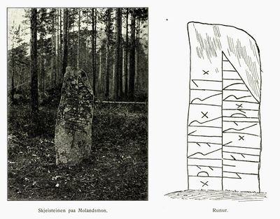I Molands Præstegjeld skal (ifølge Budstikken 5. årgang 1824, S.1 91) imellem Veum og Molands Kirke findes en Bautasteen med Runeskrift. (Topographisk-statistisk Beskrivelse over Kongeriket Norge. Av Jens Kraft. Del III Christiania1826. s. 212.)