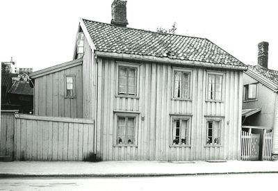 I bakgården begynner huset å se slitent ut. Ca. 1960.
