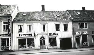 Lillemor Motesalong, (Knut Eilertsen), (1957), A. Hochlin Blomsterhandel (1957/60). - Lillemor Motesalong flyttet over gaten til Skippergata 4 i 1966.
