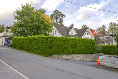 Nr. 1 er Solvikslottet, en stor murvilla fra ca. 1890, nå kontorer for Apeland Informasjon.