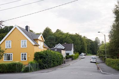 Skogveien sett vestover fra Iver Jernskjeggs vei.