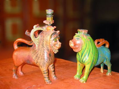 I den ovanomtala artikkelen i Setesdølen vert det vidare fortalt at Olav Høljesson, medan han budde i Bykle, dreiv og skar ut treskulpturar. Det var «hestar og lysestakar forma som løver. Sjølve lyshaldaren var plassert på ryggen eller på hovudet på løva. Ofte var det skore ut fleire løver som stod med bakenden mot kvarandre. Lyshaldaren var då plassert i midten der løvekroppane møttest. Løvene ser snille og koselege ut. [...] Ein av lysestakane er i Norsk Folkemuseum, og ein er i Nordiska Museet [i Stockholm]. Det finst og ein svartmåla fireløvestake i Bergens Museum. Dessutan finst det [nokre] som er i privat eige».