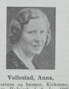 | Anna Vollestad | Født i Drangedal 8. desember 1899, død i Elverum 31. januar 1971. | Frysjøberget skole | Gift med Erling Vollestad. | |