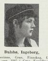 | Ingeborg Dahlsbø | Født i Grue 17. september 1897, død i Elverum 26. september 1988. | Skasenden | Gift med Anton Dahlsbø, mor til Dagmar Strand, lærerinne i Kongsvinger. Hun arbeidet også ved Bånerud skole i Brandval. | |