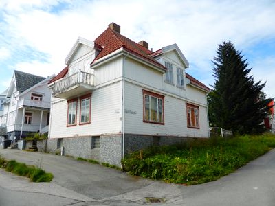 Skolegata 14 i Tromsø er et vakkert hus, men trenger et strøk maling. - Tidligere adresser Øvre skolegate 2e, Øvre skolegate 14a.