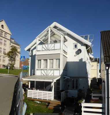 Skolegata 33 i Tromsø var barndomshjemmet til forfatteren og polarforskeren John Giæver. - Tidligere adresse: Øvre skolegate 49, matr.nr. 720.