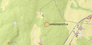 Grunnen der Skredderstua lå, hører til Søndre Haug (gnr. 258, bnr. 2).