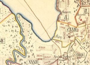 | Skrikerud på kart fra 1790 sammen med Røya. Legg merke til at Skaare ikke er avmerket (navngitt). Kartverkets historiske arkiv. | |