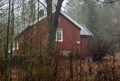 Våningshuset på Skullerudhullet sett fra turveien fra Skullerudstua til Rustadsaga.
