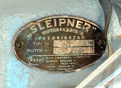 Merkeplate med motornummer og fabrikasjonsår.