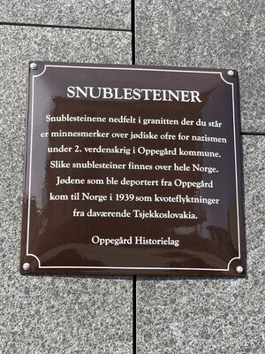I 2018 tok Bjørn Gunnar Ganger (AP) sammen med Synnøve Kronen Snyen (SV) initiativ til å få lagt ned åtte snublesteiner i daværende Oppegård kommune, for å minnes de jødiske flyktningene fra Tsjekkia og Østerrike som var bosatt i Oppegård i 1939. Det var 8 jødiske flyktninger som ble arrestert, deportert og drept i konsentrasjonsleiren Auschwitz i 1942-1943.