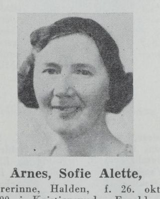Sofie Alette Årnes (født 16. oktober 1900 i Kristiansund, død 8. januar 1991 samme sted) var lærer. Hun tok eksamen ved Oslo lærerskole i 1921, Statens lærerinneskole i husstell på Stabekk i 1935 og hadde kurs i håndarbeid fra 1937. I 1939 studerte hun engelsk ved universitetet. Sofie Årnes underviste flere steder i landet, Narvik 1923-1930, Kristiansund 1930-1934, Fana 1935-1936, Kristiansund 1936-1937, Farsund folkehøgskole 1937-1946 og Halden folkeskole fra 1946.