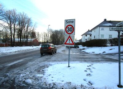 Den går fra Kaldnesgaten sørøstover til grensa til Færder kommune, nær Kirkeveien i sistnevnte kommune. Den er tilstøtende til Havegaten, Orveien og Biskopstien, deretter krysser den Banebakken, er tilstøtende til Skoleveien, og er til slutt både tilstøtende til, og krysser, Cappelens vei.