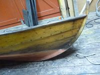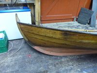 Bildet viser tofte i framskuten; denne har et skott under, som gjør det enkelt å sette den fast og ta den ut. Planen var å feste mast her, til et lite seil. Riggen ble aldri lagd.
