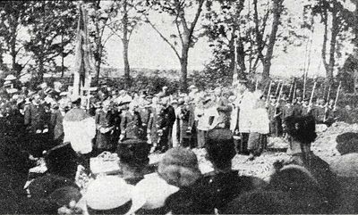 I denne tiden ble kirken høytidelig konsekrert av biskop Fallize som ble assistert av mange geistlige 12. mai 1914. Rundt tre måneder senere brøt første verdenskrig ut i Europa, og to år senere forrettet pater Maesch i en begravelse som nevnes i Fredrikstad bys historie. 31. mai 1916 stod Jyllandslaget, og før 25. juni hadde 25 døde drevet i land og blitt brakt til Østre Fredrikstad gravkapell. 12 briter og seks tyskere ble da fulgt til Fredrikstad krigskirkegård av minst ett tusen mennesker. Prost Koren, sogneprest i Østre Fredrikstad kirke, holdt liktalen i kapellet mens pastor Maesch forrettet ved gravene til de døde katolikkene.