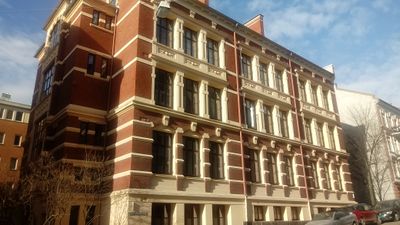 Skolen holdt til lokalene etter Hammersborg skole 1935 til 1955, her rektorboligen ut mot Akersgata.