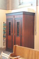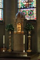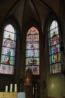| Altertavle: | Ingen altertavle, i stedet glassmaleri av korsfestelsen |