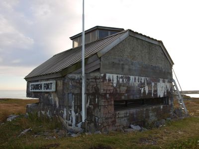 Det bodde bare omkring 500–600 mennesker på Titran ved krigsutbruddet. Da bygginga av fortet ble starta opp kom det et betydelig antall tyskere og østeuropeiske krigsfanger dit, og til tider kunne det være opp mot dobbelt så mange tyskere som nordmenn på øya. Alle de femten bolighusene på Stabben ble overtatt av tyskerne. Fortet ble utsatt for et bombeangrep, uten at dette førte til personskader eller dødsfall.