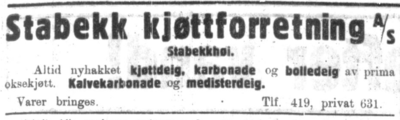 I Stabekkhuset fantes forretningen Stabekk Kjøtt som trolig ikke må forveksles med utsalget Elise Sørbye hadde i Stabekkhuset. En annonse i Asker og Bærums Budstikke 7. juni 1973 omtaler dette som en fortsettelse av «Ringstads utsalg».