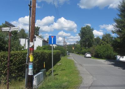 Strekningen fra Sandviksveien til Dragveien fikk navn i 1924, resten i 1955. Veien har navn etter Blommenholm stasjon. Tomtene er skilt ut fra gårdene Blommenholm og Ramstad.