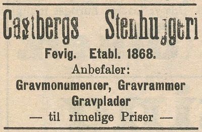 Carlberg opplyser i egne annonser at firmaet ble etablert i 1868.[2] I 1880 annonserer N. Carlberg, Fevik, etter "to dygtige Stenhuggere" til "Fevig Stenbrud".[3] I 1882 trenger han flere medarbeidere, til hugning og enmansboring og til trappestenshuggning.[4]