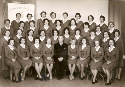 - Til 50-årsjubileet ville man ha selskapsantrekk, så i januar 1984 vedtok de at det skulle være bluse og langt skjørt. Resultatet ble sort skjørt og rød bluse med en hvit rose som pynt.