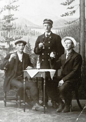 (Det gjenstår å få bekreftet om karen til venstre er Aksel eller Johan. De to andre er identifisert som Lars og Karl. Sammenlignet med to andre fotografier, er det mest sannsynlig at karen til venstre er Aksel Stensrud.)