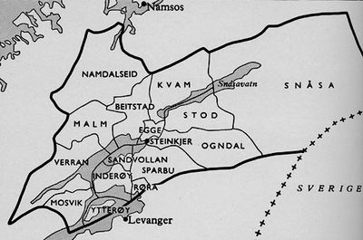 Steinkjer-distriktet i 1963. Her ser vi blant annet de tre kommunene Egge, Kvam og Stod som fra 1837 utgjorde Stod kommune.