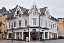 | 23 | Gnr. 173/154 Hans Sperre kolonialforretning 1901–1981. Sperre åpnet 31. juli 1950 byens første selvbetjeningsbutikk, den gang kalt «S-butikk». | |