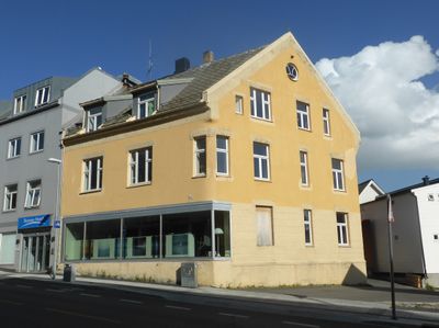 Storgata 101 i Tromsø er en av de sjeldne forretningsgårdene i mur som ble reist tidlig på 1900-tallet. - Gammelt matr.nr. 89.