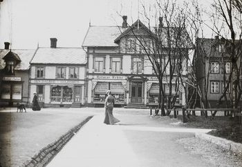 Hilmar Lehne flyttet inn i nybygd gård ca. 1900. Severin Dalbye startet sin forretning i 1900 og var her til 1922. Ca. 1910?