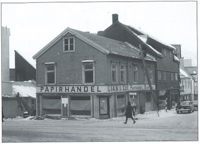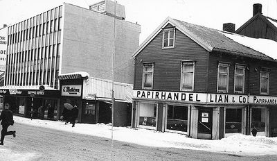 Fra 1955 Ewald Lian & co, bokhandel. Bokbinder Lian startet sin virksomhet rundt 1930. Hit kom han da Peder Norbye flyttet ut.