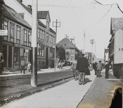 I 1916: T.J. Haugen, bakerforretning, Nikoline Henriette Haugen, handelsbetjent Einar Næss, Simon Skorve m/gullsmedforretning i Storgata 80.