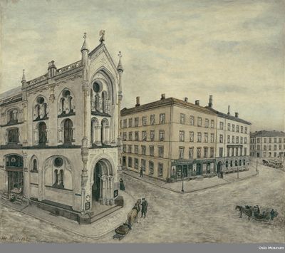 Brambanigården på hjørnet av Stortingsplass, omkring 1880.