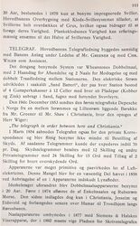 Her gis en detaljert beskrivelse av telegrafanlegget – en helt nødvendig ingrediens for å kunne avvikle en sikker togekspedisjon. Spesielt vies avsendelsen av landets første telegram mellom Sagdalen og Christiania stor oppmerksomhet. Det ble sendt fra bomvokterstasjonen ved Stalsberg, der jernbanen krysset den daværende Strømsveien hvor denne gikk over i Gislebakken og videre ned mot dagens rundkjøring. De engelske entreprenørene uttrykte seg på sitt eget morsmål: «The telegraph in order between here and Christiania.»