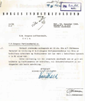 Brevene nedenfor er originalutgaver som stammer fra arkivet etter Det Kongelige Slott, Hoffetaten. Brevene viser at bedriften verdsatte de ansattes innsats høyt. Brevet til Kongen av 12.12.1949 er fremsendt via Norges Industriforbund, og anbefalt derfra. En påtegning fra Det Kongelige Slott viser at brevet er offentliggjort 27.01.1950.