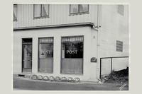 Skedsmo rådhus, Strømmen 1960. Tjente som rådhus fra 1957 til 1990. I bakgrunnen bl. a. Strømmen Sparebank, Sverre Damhaugs Elektriske forretning. Strømmen Samvirkelag og Tvetergården.