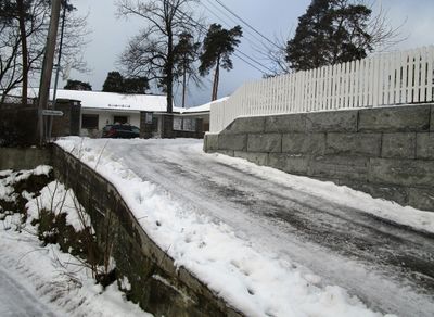 Veien har navn etter nr. 4, villaen «Strandhaugen», og ble navnsatt i 1956.