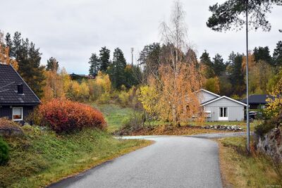 Veien ble navnsatt i 1990. Bebyggelsen består av 6 eneboliger oppført rundt 1990.