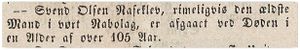 I 1865 finner vi Svend, som hundreåring, hos sønnen Ole Svendsen i Austre Moland.[1].
