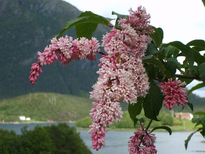- Persersyrin (syringa persica), mindre, fiolette blomar i små klasar.